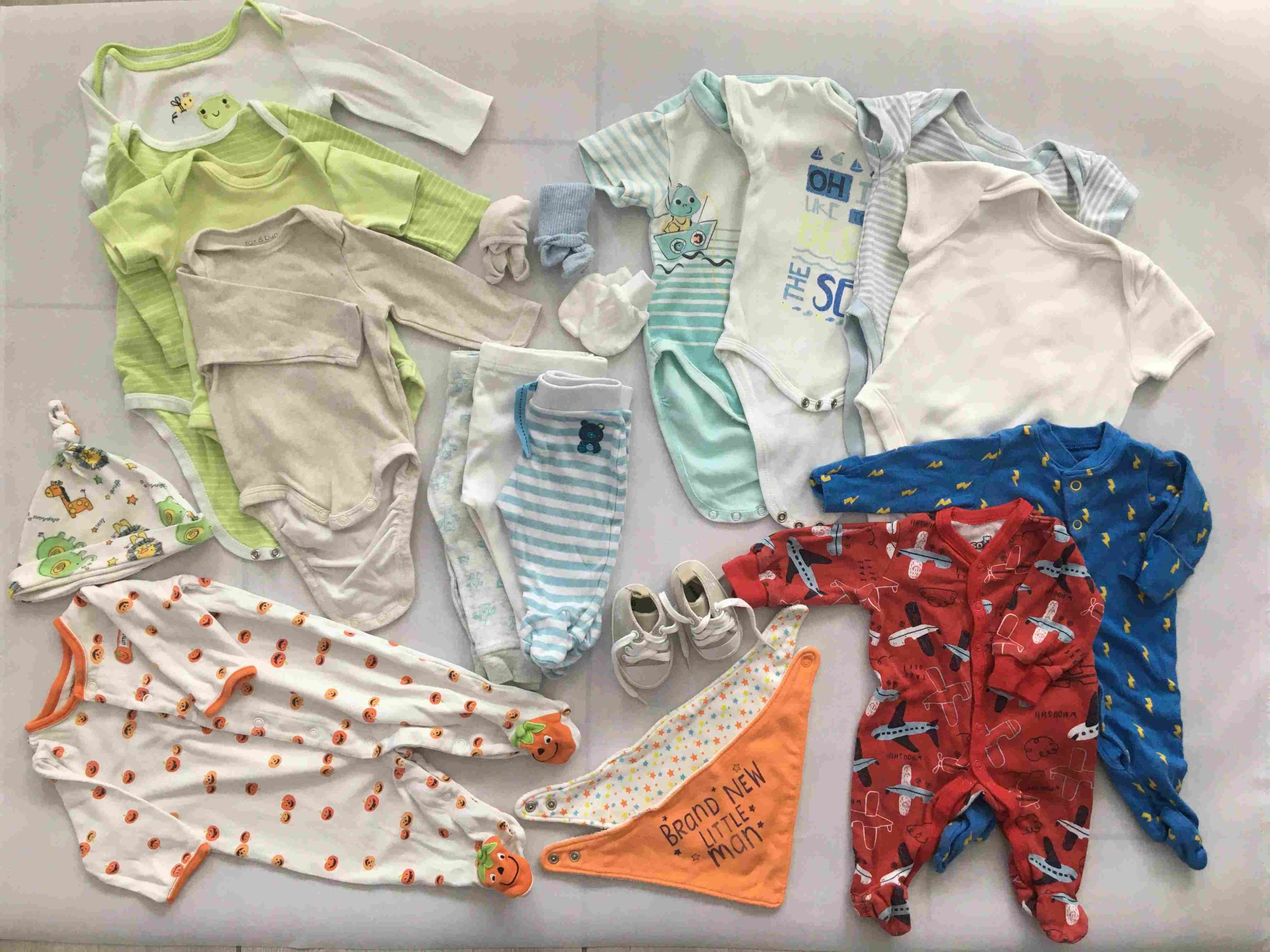 Cuki ruhatár a játszós hétköznapokra, 0-3 hós bébiknek. A csomagban találsz 3 rugit, 5 rövid ujjú bodyt, 3 hosszú ujjú bodyt, 3 melegítő nacit, 2 pár zoknit, 1 pár kesztyűt, 2 nyálkendőt, 1 cuki sapit és 1 pöttöm kocsicipőt. (21 darabos)