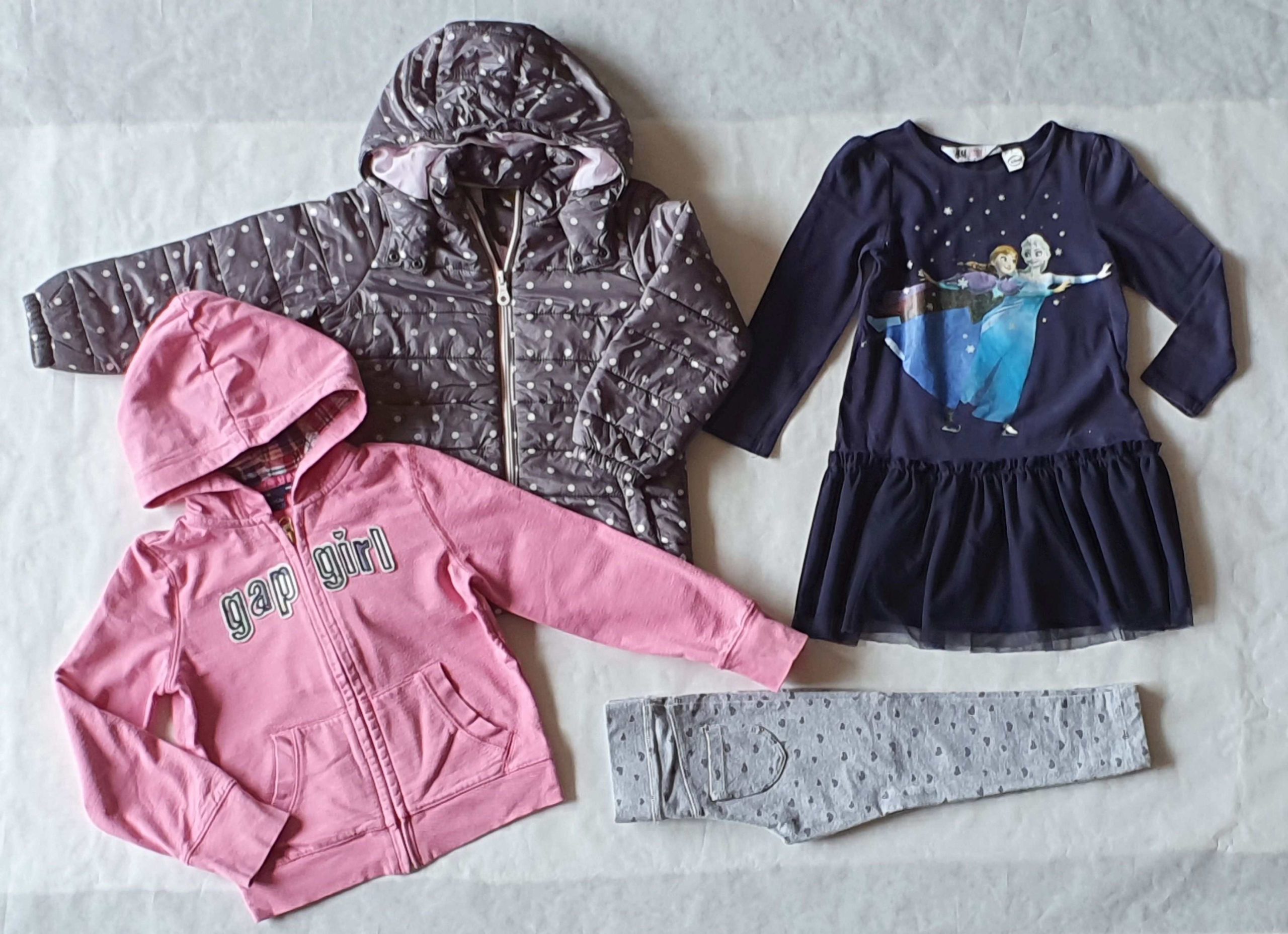 Kényelmes, átmeneti csomag (1 kabát, 1 Gap pulóver, 1 leggings, 1 Frozen ruha) 2-3 éves kislánynak.