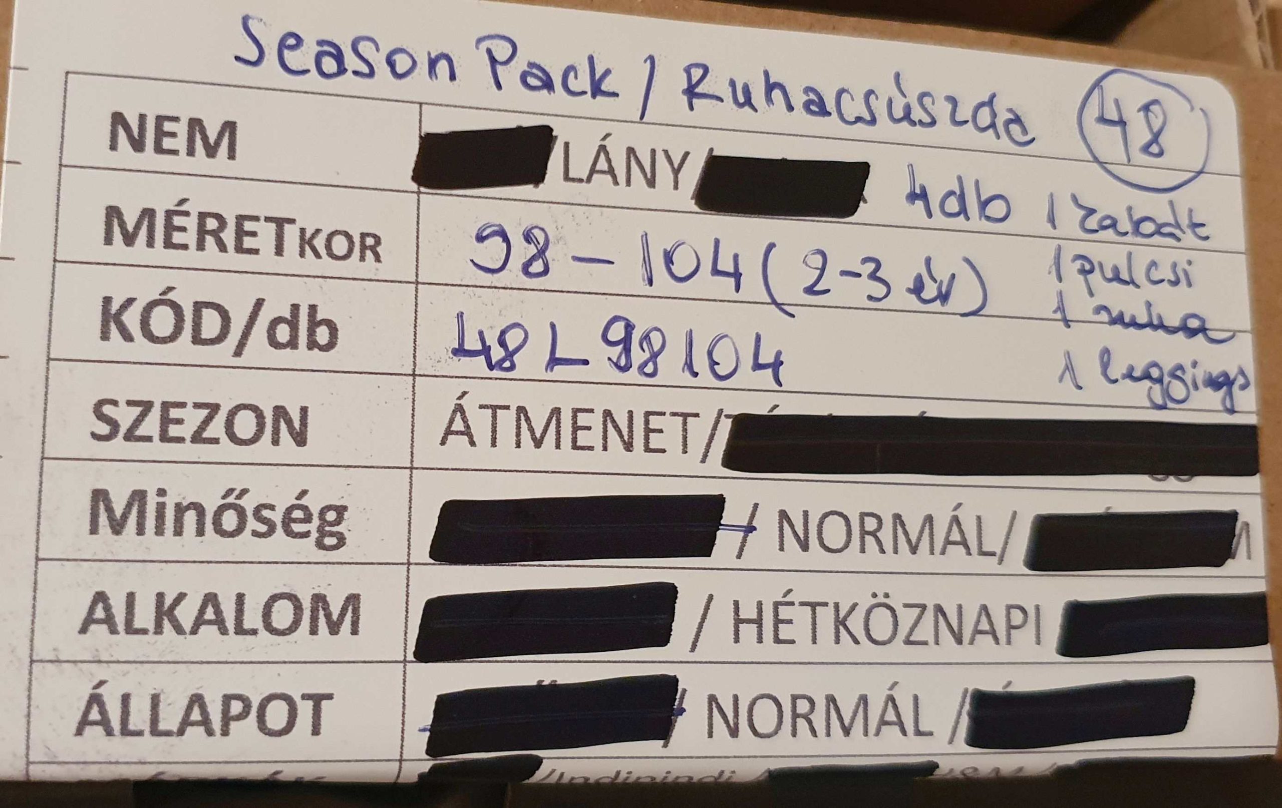 Mit is értünk ez alatt? A szezoncsomag egy azonos nemű, egy szezonú, és max. 2 egymást követő méretet tartalmazó ruhacsomag! Pl. LÁNY, ÁTMENETI, 122/128-as MÉRET. A csomagodba csak gondosan átválogatott, mosott, hibátlan darabokat tegyél, olyan holmikat, aminek Te is örülnél!