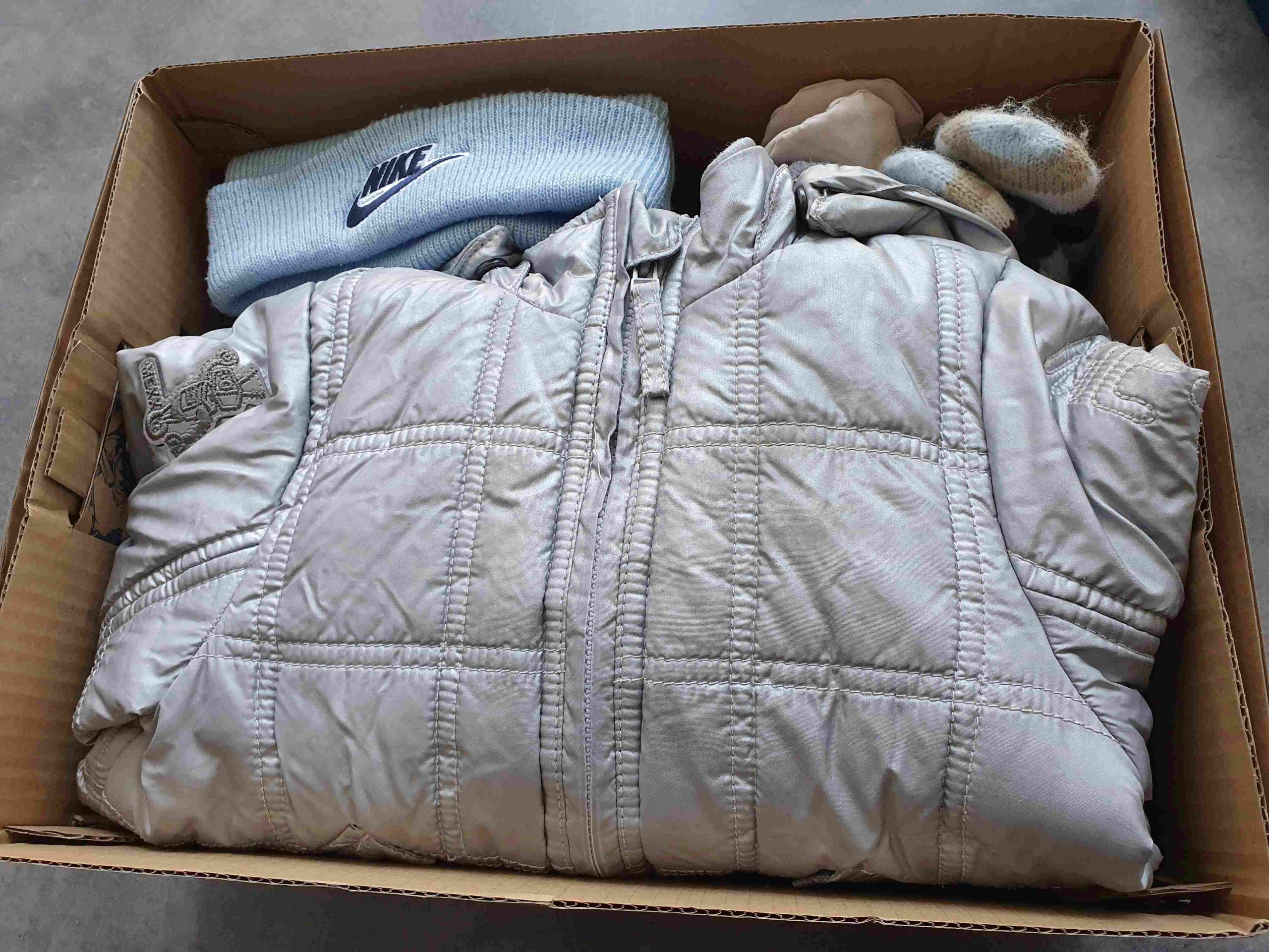 Praktikus csomag a mindennapokra! Benne: 1 vagány Next átmeneti kabát, 1 Mexx téli kabát (hibáját fotóztuk), 1 ing, 1 Ralph Laurent hosszú ujjú, 1 sapka-sál-kesztyű szett.