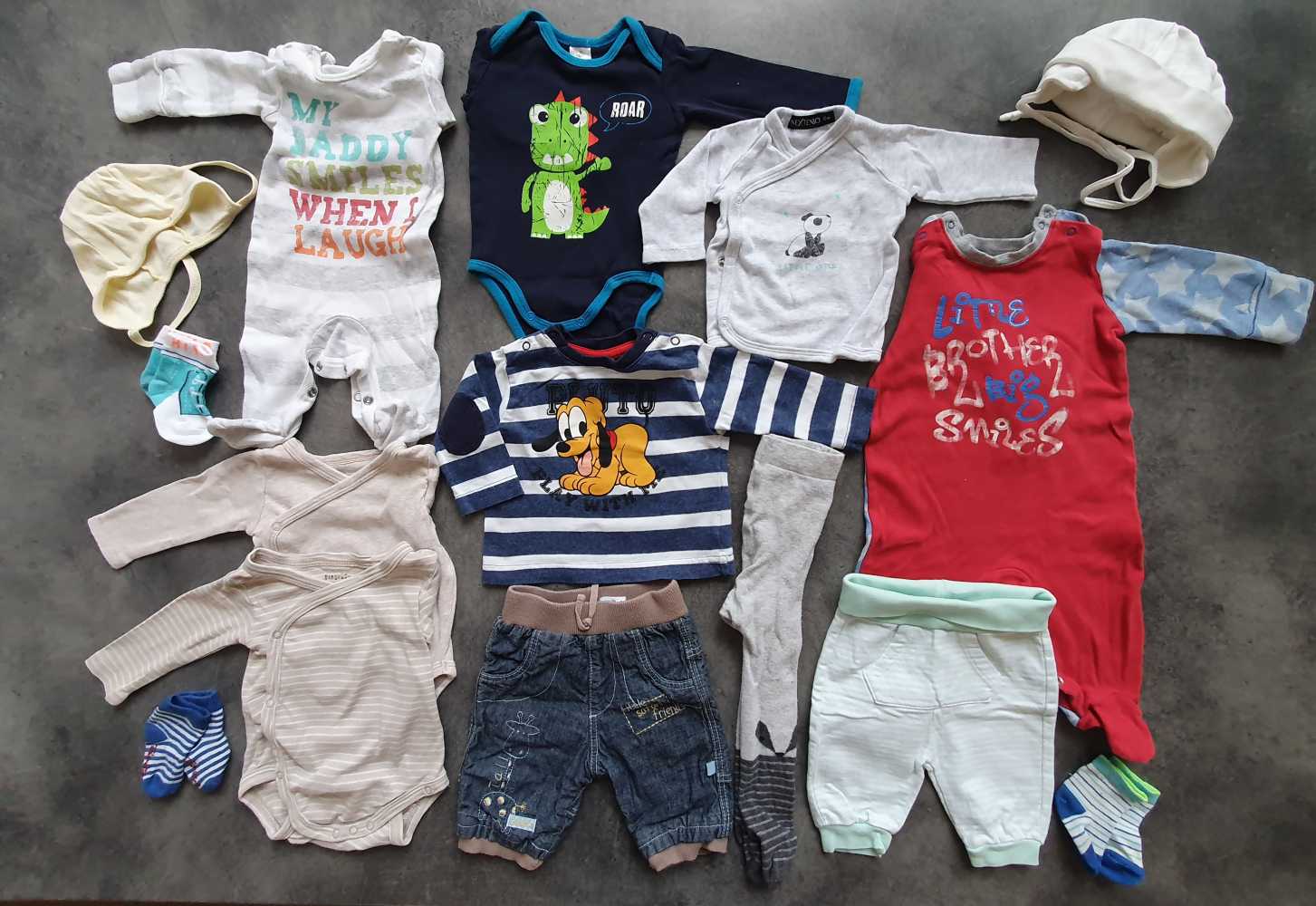 12 db-os minikapszula 0-3 éves babákra, benne: 3 body, 2 rugdalózó, 2 hosszú ujjú, 1 melegítő naci, 1 farmer, 1 harisnya, 2 sapi és ajándék 3 pár zokni.