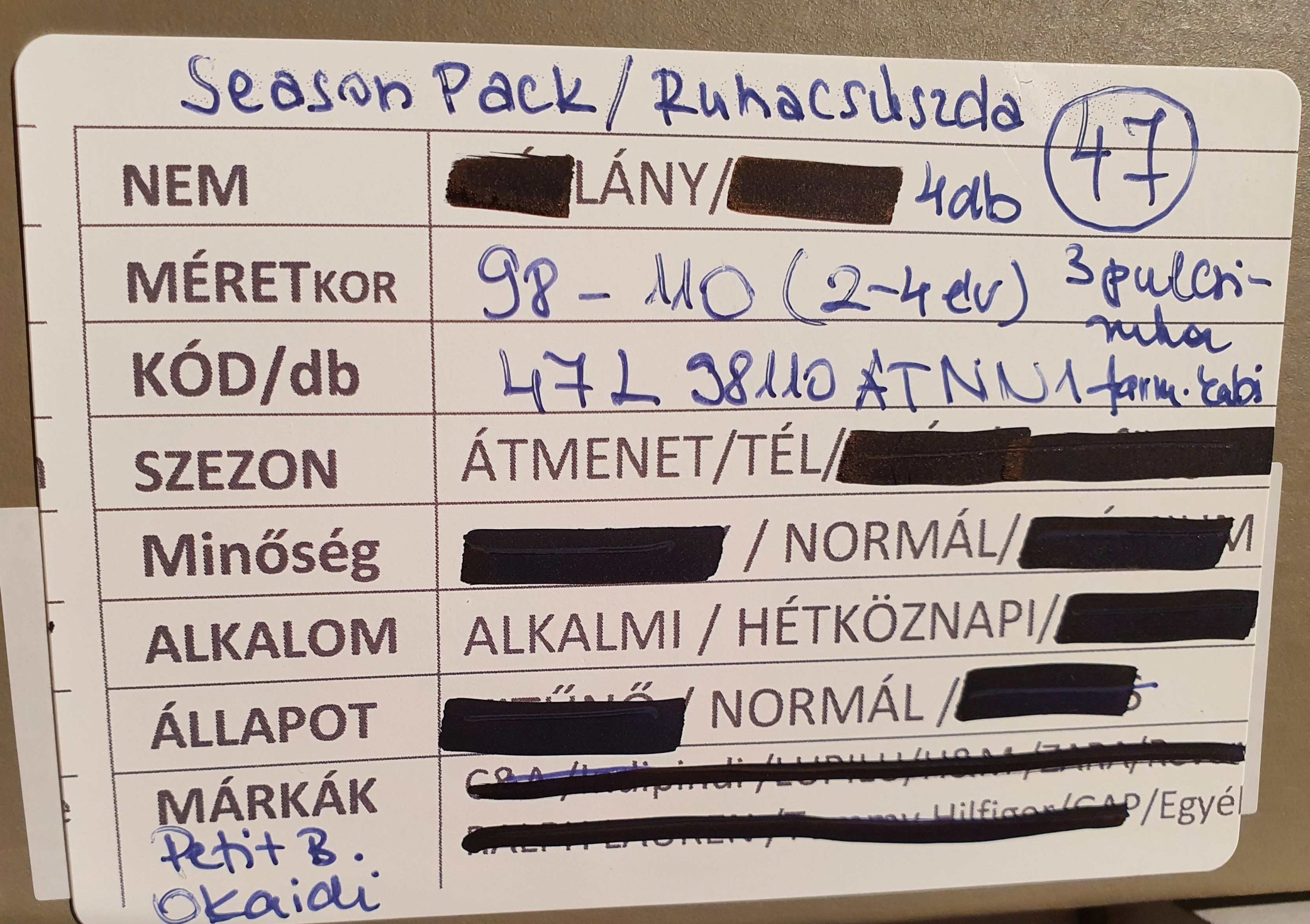 Mit is értünk ez alatt? A szezoncsomag egy azonos nemű, egy szezonú, és max. 2 egymást követő méretet tartalmazó ruhacsomag! Pl. LÁNY, ÁTMENETI, 122/128-as MÉRET. A csomagodba csak gondosan átválogatott, mosott, hibátlan darabokat tegyél, olyan holmikat, aminek Te is örülnél!
